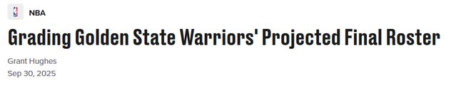 美媒公布勇士队详细评级:首发A替补C 耐用性只评D成最大隐患